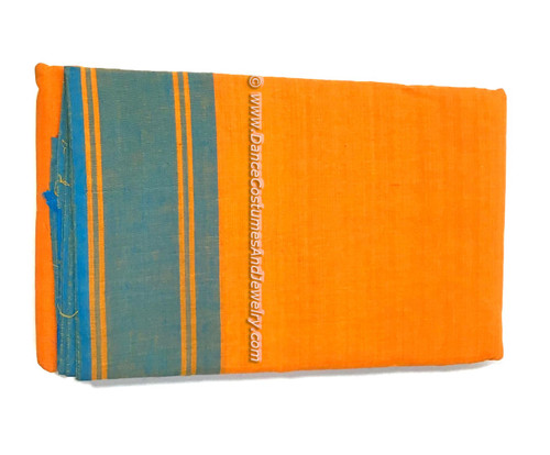 Light Orange Dance Practice Sari with plain Blue Border